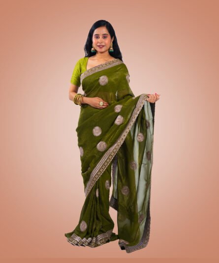 Kayaaz Women's Georgette Moss Green Saree With Unstitched Blouse Piece