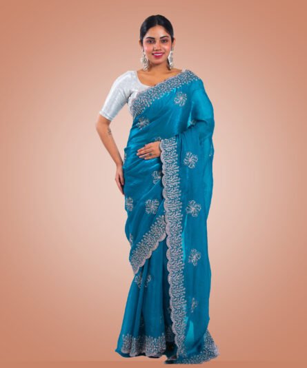 Kayaaz Women's Orgenza silk Aqua blue saree With Unstitched Blouse Piece