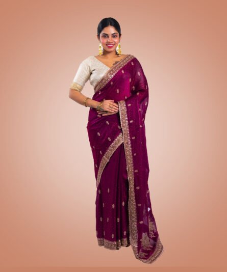 Kayaaz Women's Vichitra Silk Deep Magenta Saree With Unstitched Blouse Piece