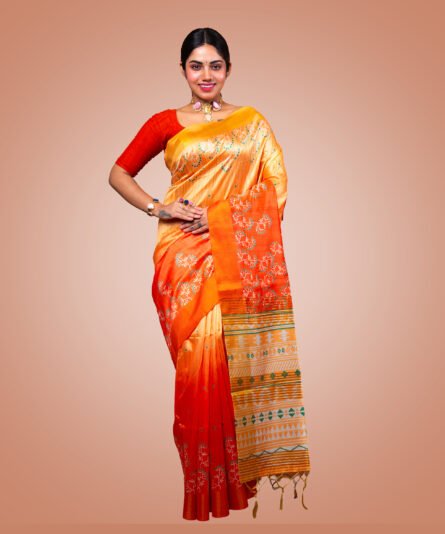 Kayaaz Women's Bhagalpuri semi silk orange Saree With Unstitched Blouse Piece