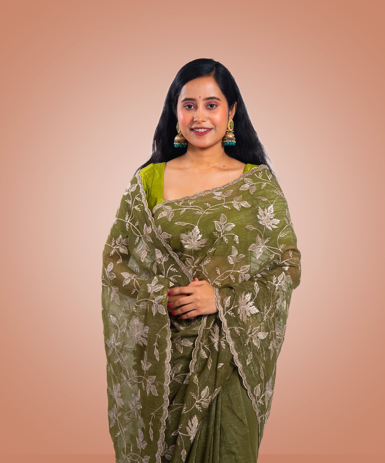 Kayaaz Women's Fancy Army green Saree With Unstitched Blouse Piece
