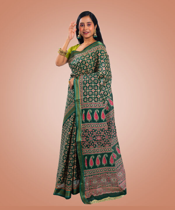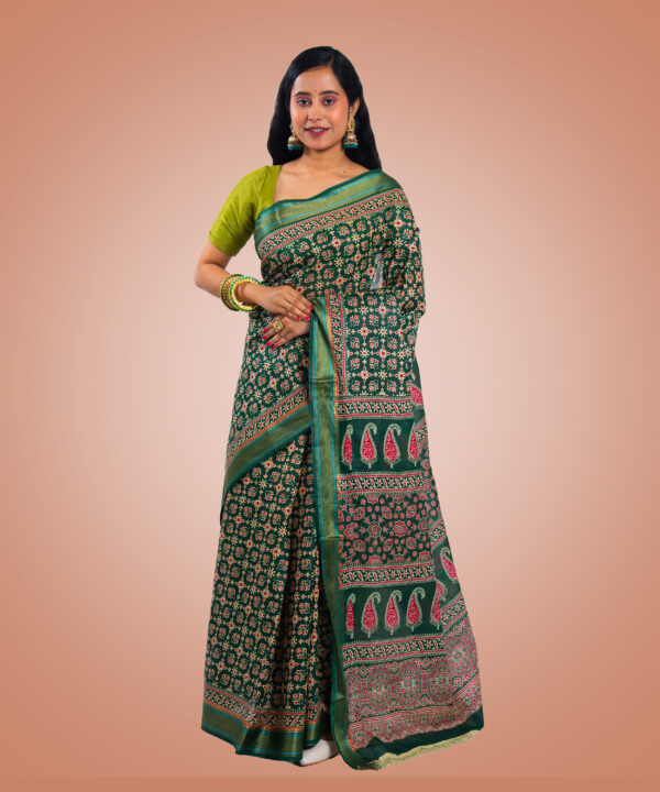 “Kayaaz Women’s cotton Hunter green Saree With Unstitched Blouse Piece description