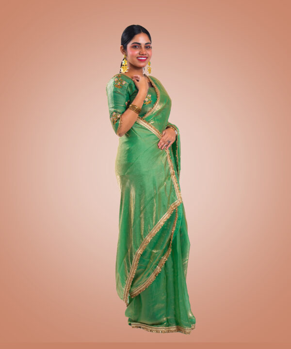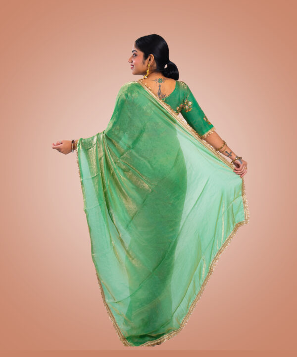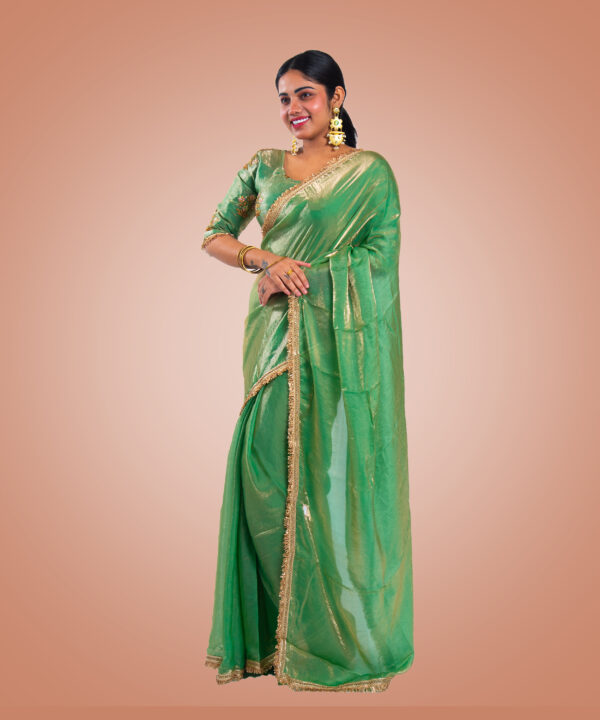 The soothing mint green shade adds a touch of freshness and sophistication, making it an ideal choice for daytime events, parties, and special occasions. Whether paired with statement jewelry for a festive look or kept minimal for elegance, this saree adapts effortlessly to your style.