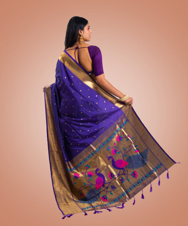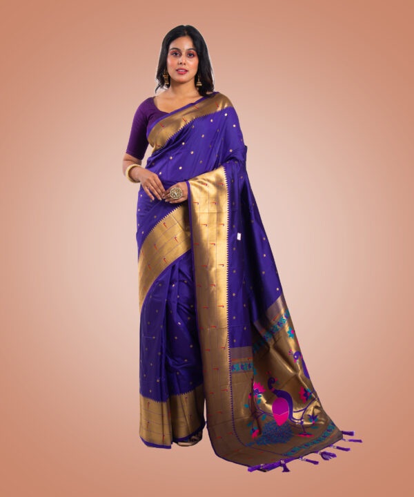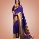 Kayaaz Women’s Paithani Purple Saree With Unstitched Blouse Piece description