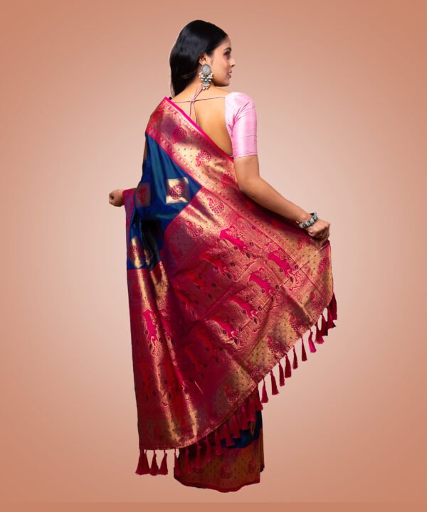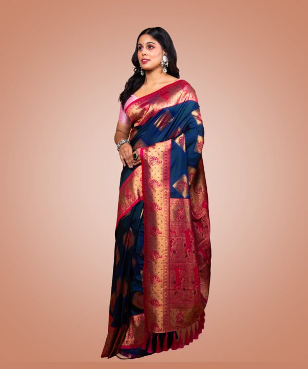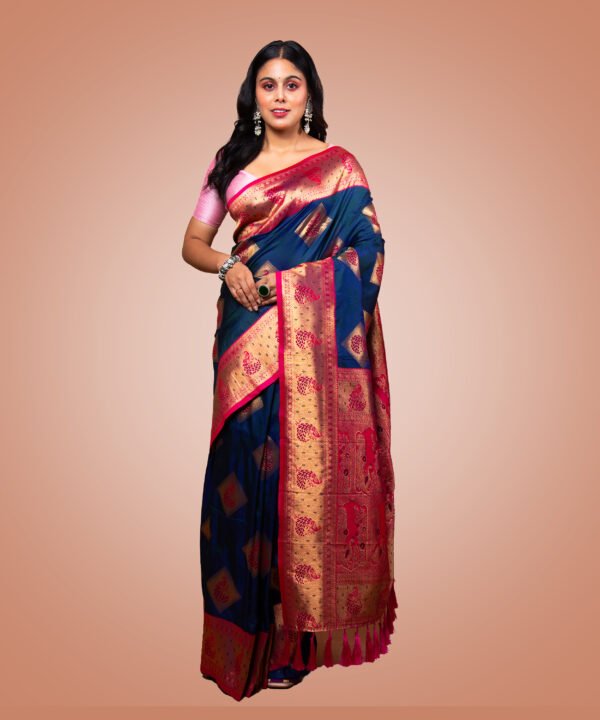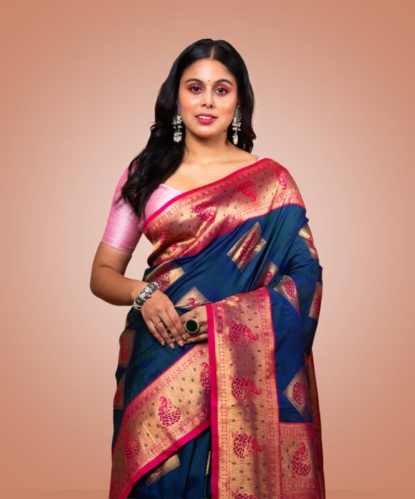 The deep navy blue shade exudes a regal charm, making it an ideal choice for festive celebrations, weddings, parties, and evening occasions. Its versatile hue flatters all skin tones and can be styled in both traditional and contemporary ways.