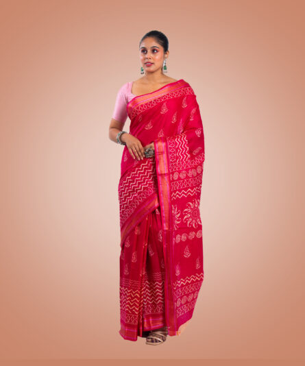 Kayaaz Women's chanderi Red Saree With Unstitched Blouse Piece