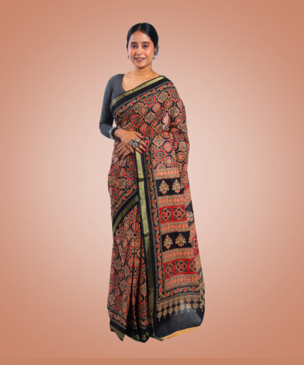 Kayaaz Women's cotton Black Saree With Unstitched Blouse Piece