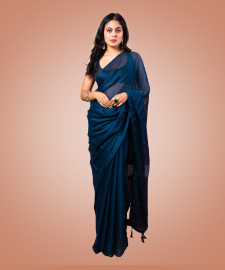 Kayaaz Women's Fancy Peacock blue Saree With Unstitched Blouse Piece