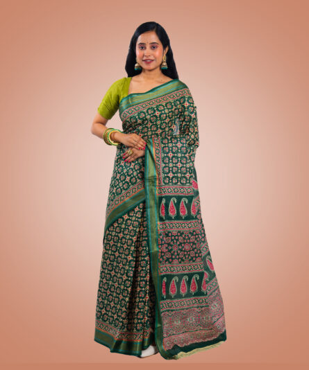 Kayaaz Women's cKayaaz Women's cotton Hunter green Saree With Unstitched Blouse Piece