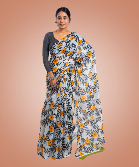 Kayaaz Women's cotton floral print white Saree With Unstitched Blouse Piece