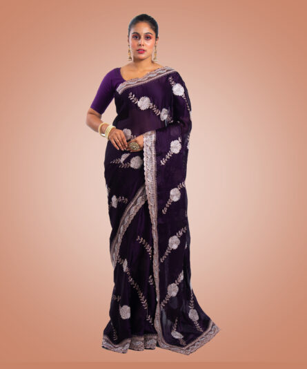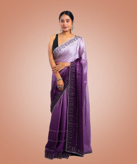 Kayaaz Women's Crunchy silk deep Vlolet Saree With Unstitched Blouse Piece